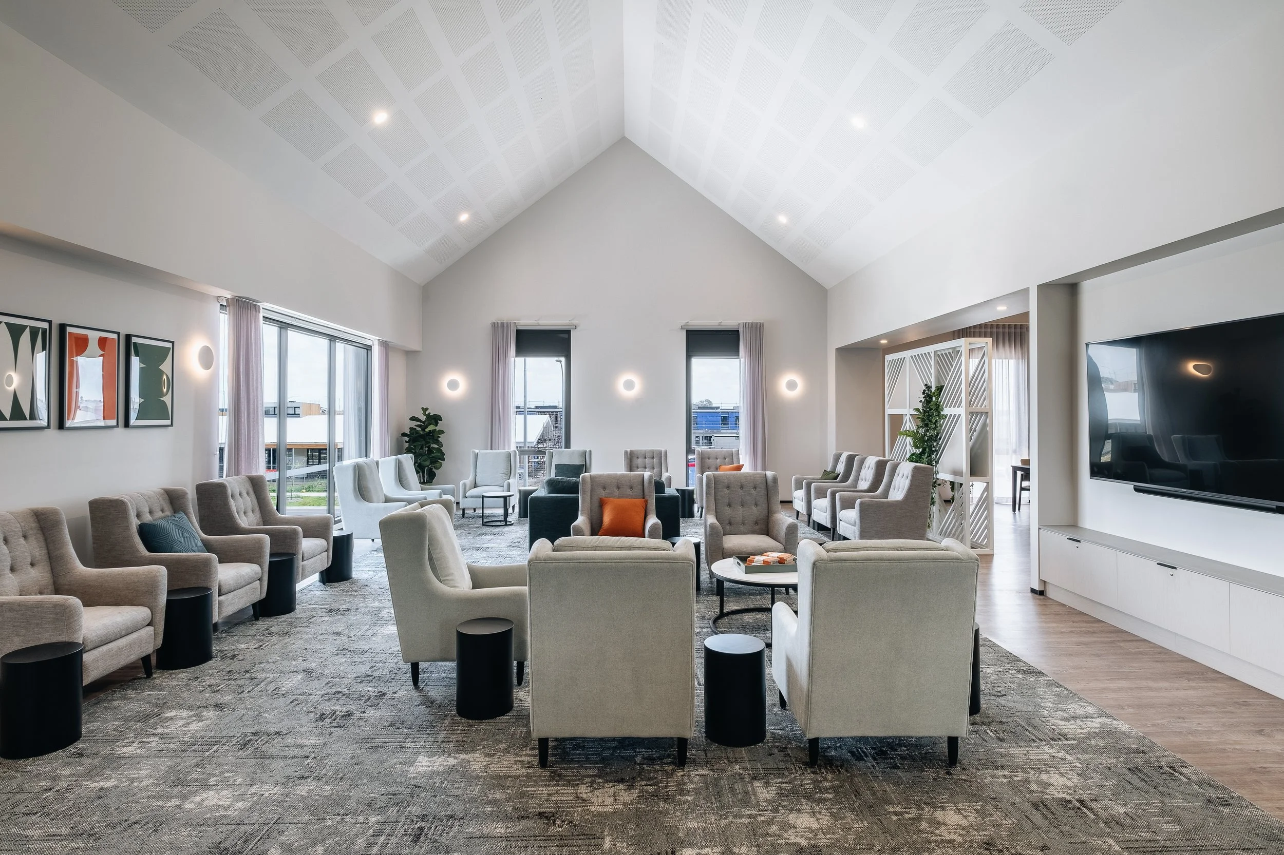 The result is a contemporary aged care setting that prioritizes wellbeing, blending personal living with vibrant communal experiences in a cohesive and nurturing environment.