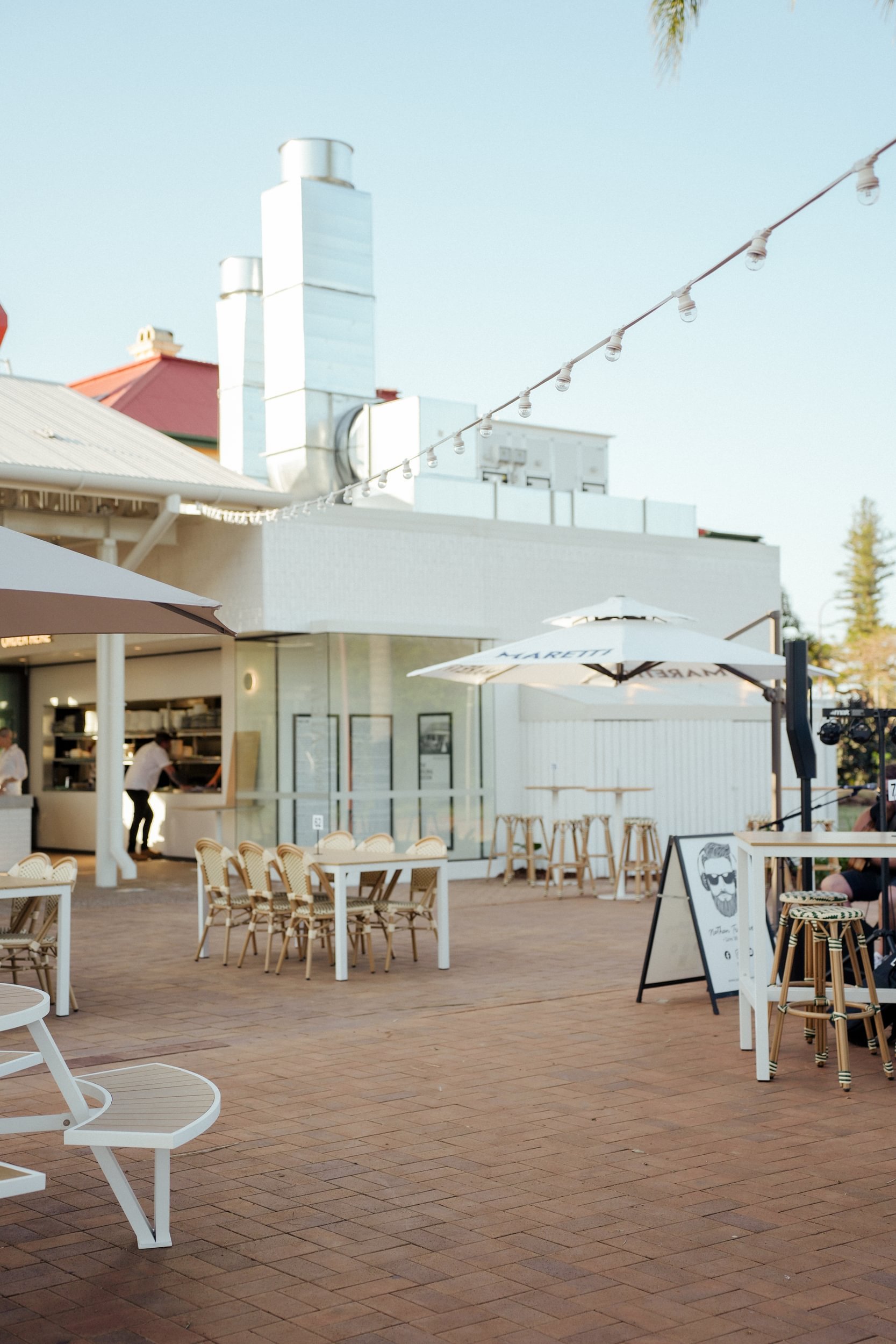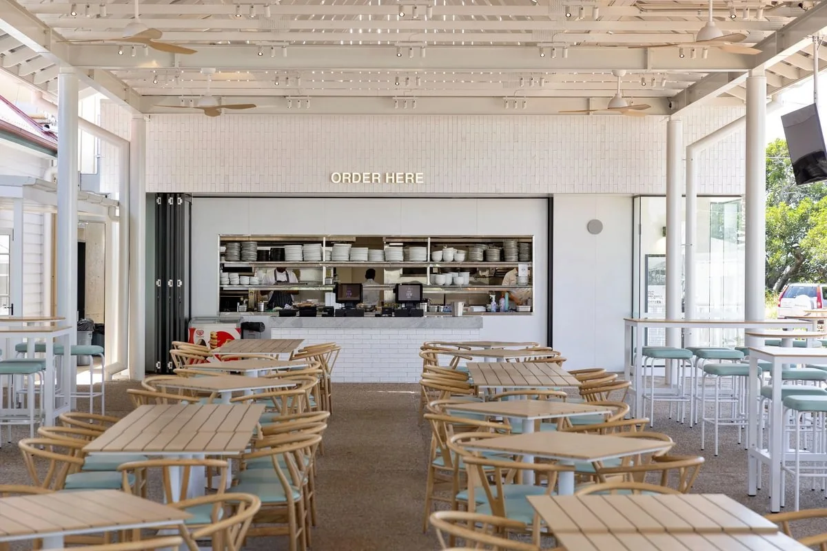 Detail F&L was engaged to manufacture and install the venue’s furniture, with a strong focus on the production of outdoor seating and tables, high stools, and custom outdoor umbrellas. Designed to withstand the demands of a busy hospitality environment and its bayside location, each piece was crafted to be durable and hardwearing without compromising on comfort or aesthetic appeal.
